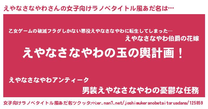 | 胡散臭い通販商品みたいなあだ名 | 『あなたにだけ特別に提供する100年もののヴィンテージワイン…その名も「えやなさなやわ」』 |