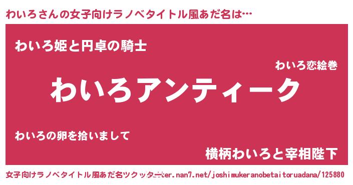 | 意味不明あだ名 | 『自称わいろ』『ペロリンわいろ』 |