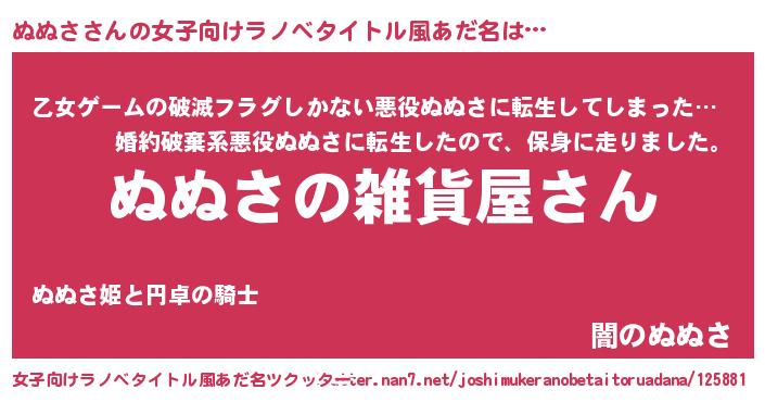 | 男性向けラノベタイトル風あだ名 | 『やはりぬぬさの青春ラブコメはまちがっている 』 |