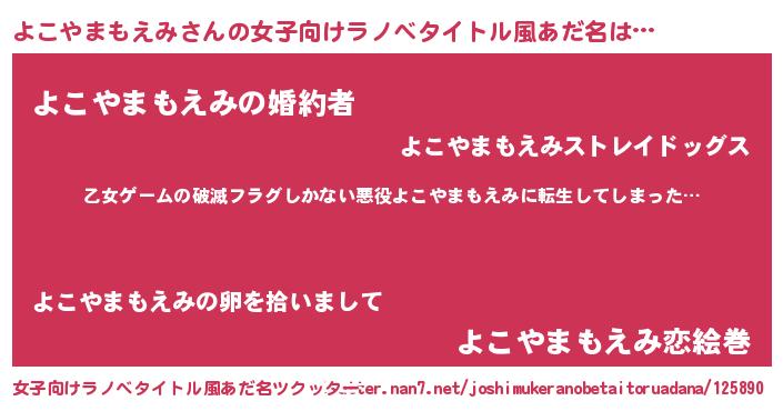 | 男性向けラノベタイトル風あだ名 | 『魔弾の王とよこやまもえみ』 |