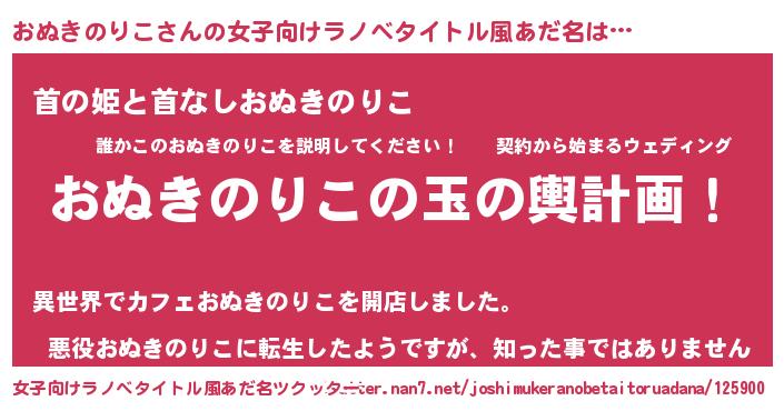 | 胡散臭い通販商品みたいなあだ名 | 『あなたにだけ特別に提供する100年もののヴィンテージワイン…その名も「おぬきのりこ」』 |