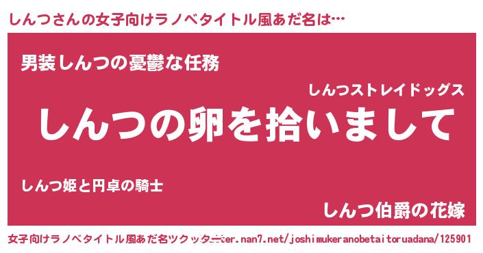 | 男性向けラノベタイトル風あだ名 | 『ダンジョンにしんつを求めるのは間違っているだろうか』 |