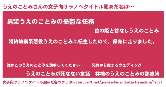 | 男性向けラノベタイトル風あだ名 | 『転生したらうえのことみだった件』 |