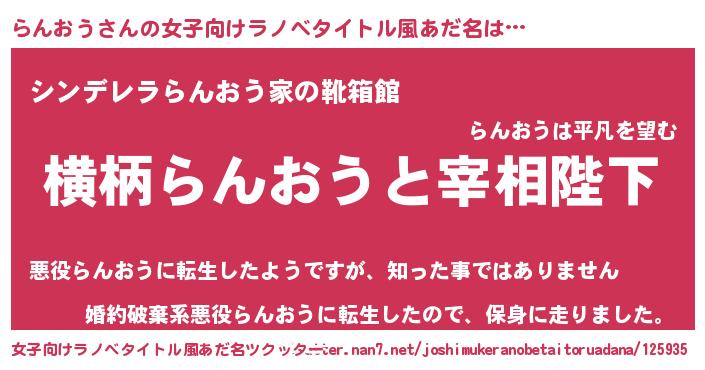 | 男性向けラノベタイトル風あだ名 | 『らんおうに滅ぼされるだけの簡単なお仕事です』 |