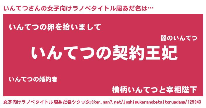 | 男性向けラノベタイトル風あだ名 | 『いんてつという概念が存在しない退屈な世界 』 |