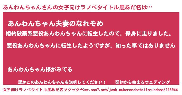 | 男性向けラノベタイトル風あだ名 | 『この素晴らしい世界にあんわんちゃんを!』 |