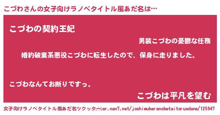 | 男性向けラノベタイトル風あだ名 | 『コヅワスレイヤー』 |