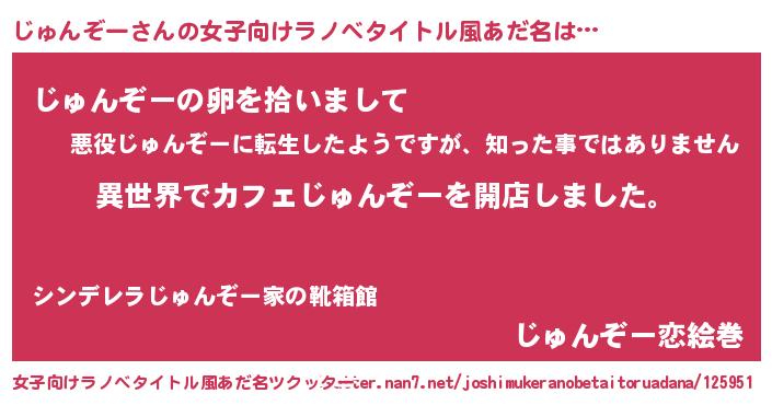 | ヘコむあだ名 | 『じゅんぞー(震え声)』『じゅ太郎』 |