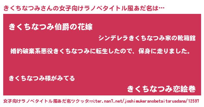 | 男性向けラノベタイトル風あだ名 | 『転生したらきくちなつみだった件』 |