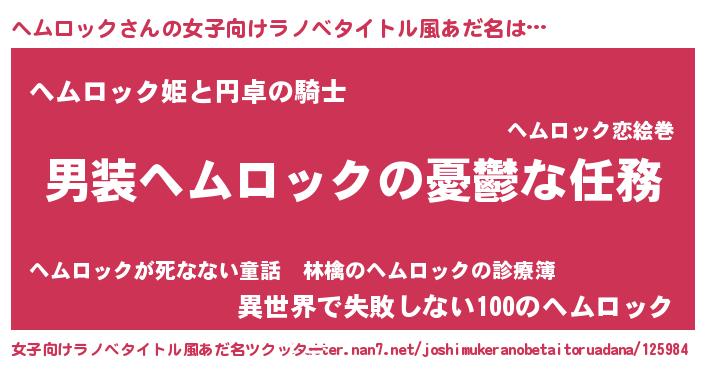 | 胡散臭い通販商品みたいなあだ名 | 『モテモテ間違いなし水晶球…その名も「ヘムロック」』 |