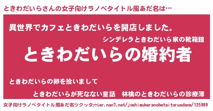 | 意味不明あだ名 | 『ときわだいらフォーエバー』 |