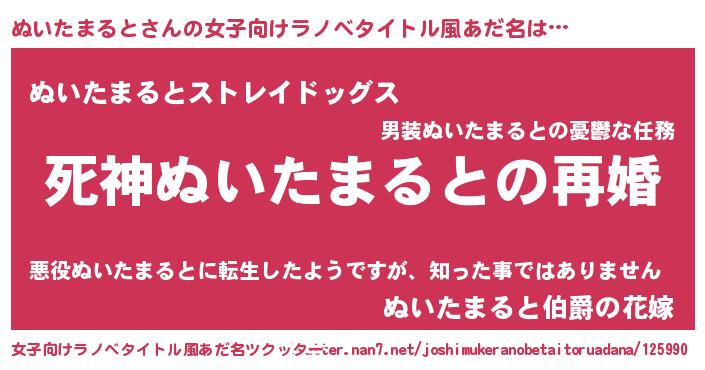 | 男性向けラノベタイトル風あだ名 | 『ノーゲーム・ノーヌイタマルト』 |