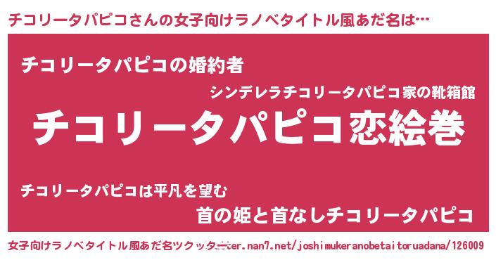 | 男性向けラノベタイトル風あだ名 | 『ノーゲーム・ノーチコリータパピコ』 |