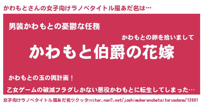 | 男性向けラノベタイトル風あだ名 | 『やはりかわもとの青春ラブコメはまちがっている 』 |