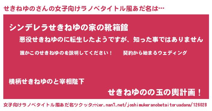 | 胡散臭い通販商品みたいなあだ名 | 『億万長者になれるブレスレット…その名も「せきねゆの」』 |