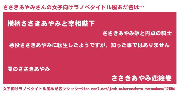 | 男性向けラノベタイトル風あだ名 | 『この素晴らしい世界にささきあやみを!』 |