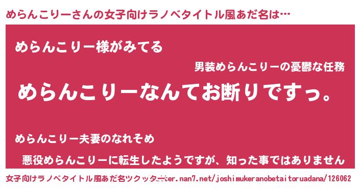 | 意味不明あだ名 | 『自称めらんこりー』 |