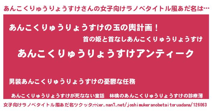 | ヒーロー風カッコイイあだ名 | 『ウルトラ戦士アンコクリュウリョウスケ』 |
