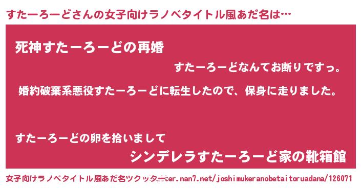 | 男性向けラノベタイトル風あだ名 | 『スターロードスレイヤー』 |