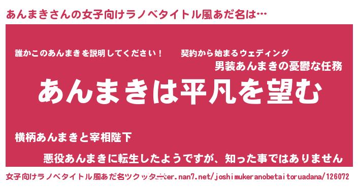 | 胡散臭い通販商品みたいなあだ名 | 『信頼と実績のサプリメント…その名も「あんまき」』 |