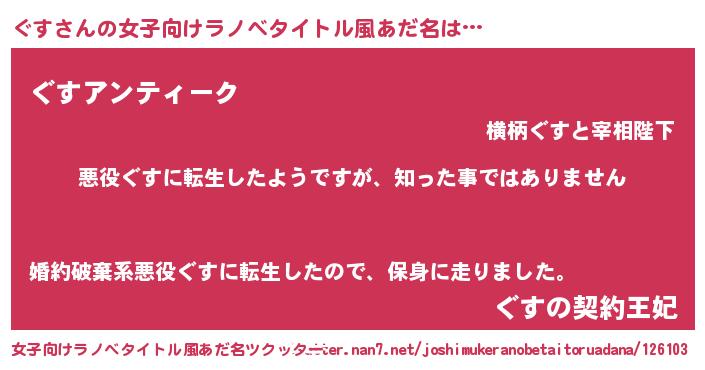 | 男性向けラノベタイトル風あだ名 | 『この素晴らしい世界にぐすを!』 |