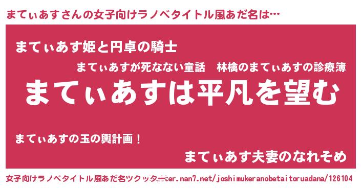 | 胡散臭い通販商品みたいなあだ名 | 『信頼と実績のネックレス…その名も「まてぃあす」』 |