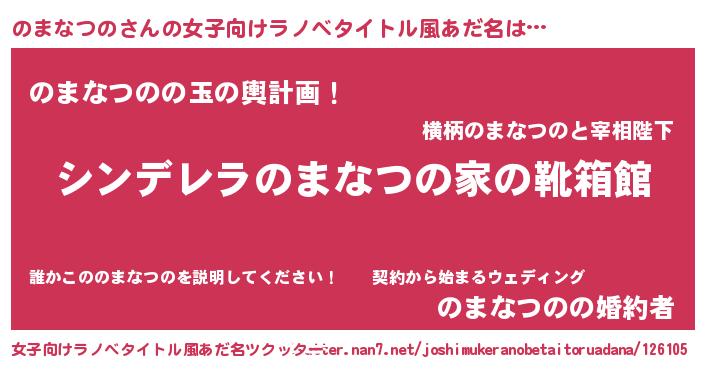 | 男性向けラノベタイトル風あだ名 | 『冴えないのまなつのの育てかた』 |