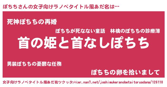 | 胡散臭い通販商品みたいなあだ名 | 『100人中100人が認めたイリジウム磁石…その名も「ぽちち」』 |