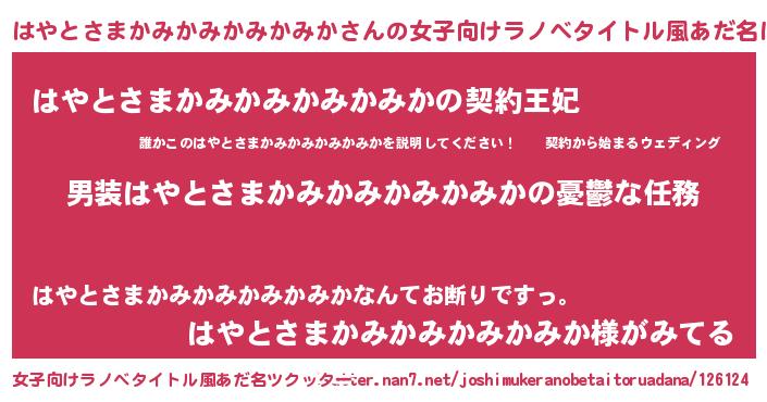 | 男性向けラノベタイトル風あだ名 | 『うちのはやとさまかみかみかみかみかが世界を掌握している!』 |