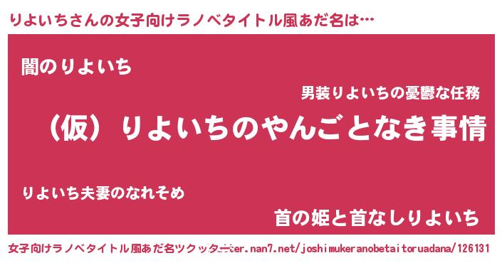 | 胡散臭い通販商品みたいなあだ名 | 『必ず成功する水晶球…その名も「りよいち」』 |