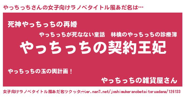 | 男性向けラノベタイトル風あだ名 | 『やっちっちという概念が存在しない退屈な世界 』 |