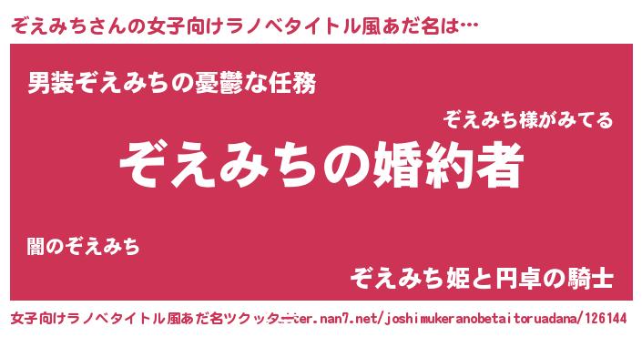 | ファンタジー風あだ名 | 『エターナルゾエミチー』『ゾエフェル』 |