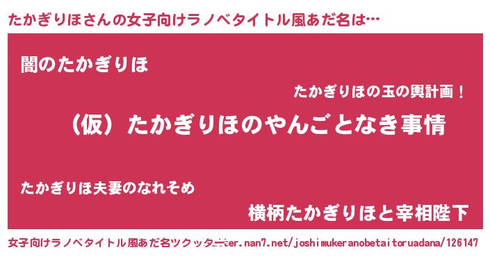 | 男性向けラノベタイトル風あだ名 | 『たかぎりほの憂鬱』 |