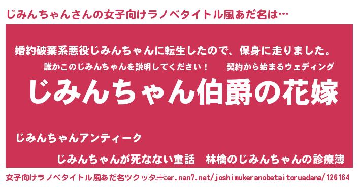 | 意味不明あだ名 | 『じみんちゃんフォーエバー』 |