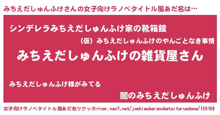 | 男性向けラノベタイトル風あだ名 | 『やはりみちえだしゅんふけの青春ラブコメはまちがっている 』 |