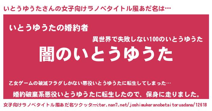 | 男性向けラノベタイトル風あだ名 | 『Re:いとうゆうたから始める異世界生活』 |