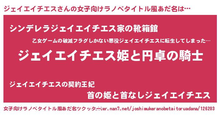 | 男性向けラノベタイトル風あだ名 | 『ジェイエイチエスアートオンライン』 |