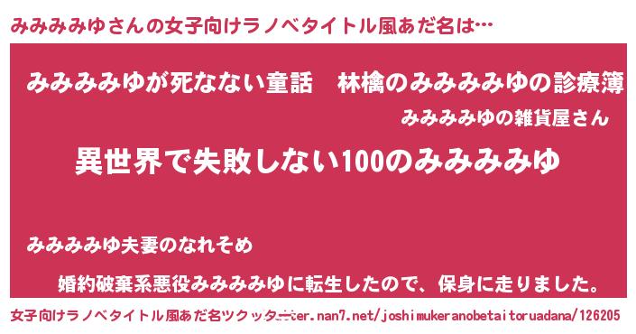 | 胡散臭い通販商品みたいなあだ名 | 『絶対に幸福をもたらす水素水…その名も「みみみみゆ」』 |