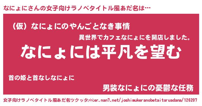 | 胡散臭い通販商品みたいなあだ名 | 『信頼と実績のサプリメント…その名も「なにょに」』 |