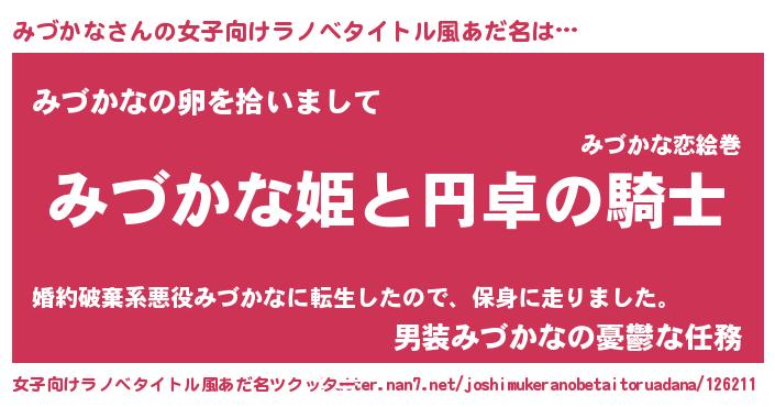 | 男性向けラノベタイトル風あだ名 | 『みづかなの憂鬱』 |