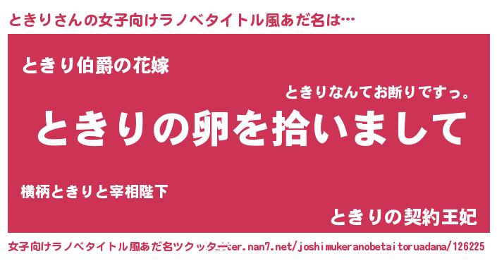 | 意味不明あだ名 | 『とにかく怪しいときり』『自称ときり』 |