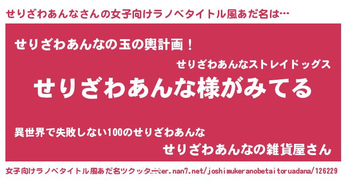 | 意味不明あだ名 | 『とにかく怪しいせりざわあんな』 |