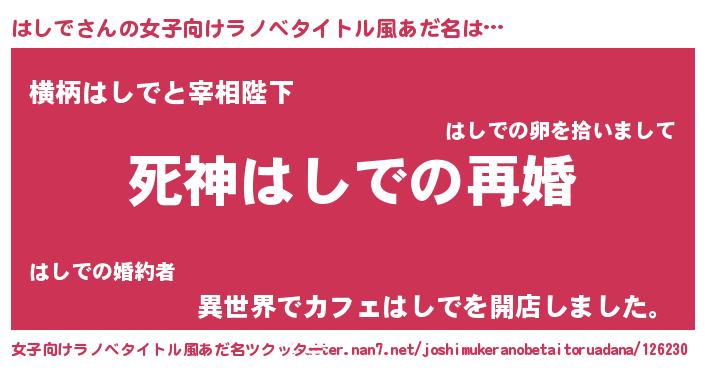 | 男性向けラノベタイトル風あだ名 | 『ノーゲーム・ノーハシデ』 |
