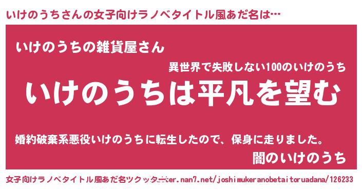 | 胡散臭い通販商品みたいなあだ名 | 『信頼と実績のサプリメント…その名も「いけのうち」』 |