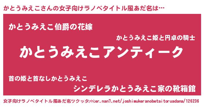 | 意味不明あだ名 | 『自称かとうみえこ』 |