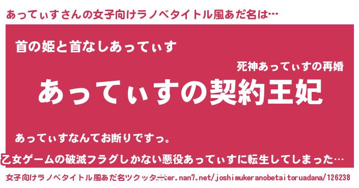 | 男性向けラノベタイトル風あだ名 | 『誰もが恐れるあのあってぃすが、ぼくの専属メイドになるようです。』 |