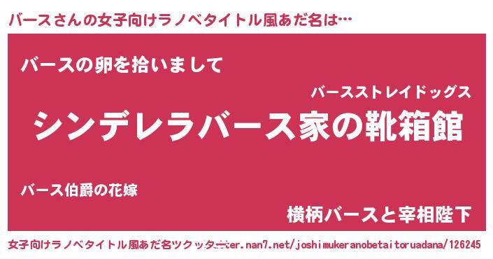 | 男性向けラノベタイトル風あだ名 | 『緋弾のバース』 |