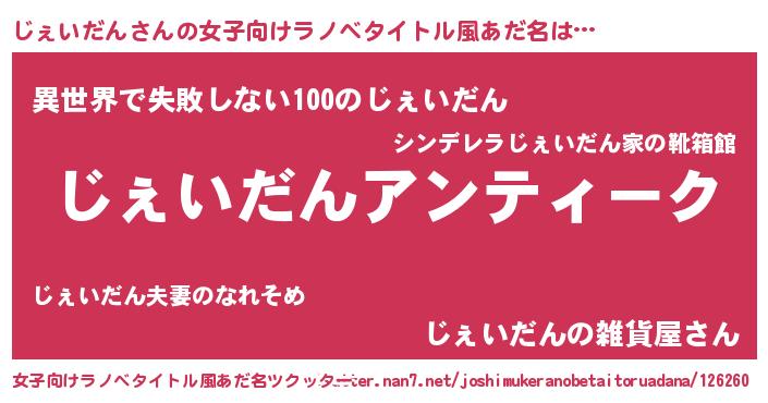 | ヘコむあだ名 | 『じぇいだん(笑)』『豆乳』『じぇを』 |