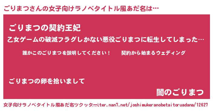 | 男性向けラノベタイトル風あだ名 | 『ゴリマツアートオンライン』 |