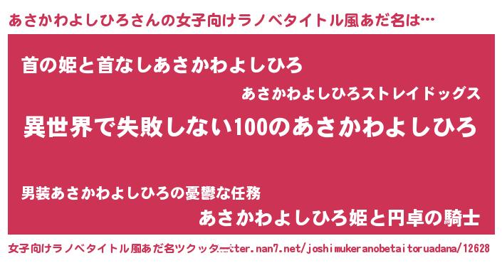 | 男性向けラノベタイトル風あだ名 | 『あさかわよしひろという概念が存在しない退屈な世界 』 |